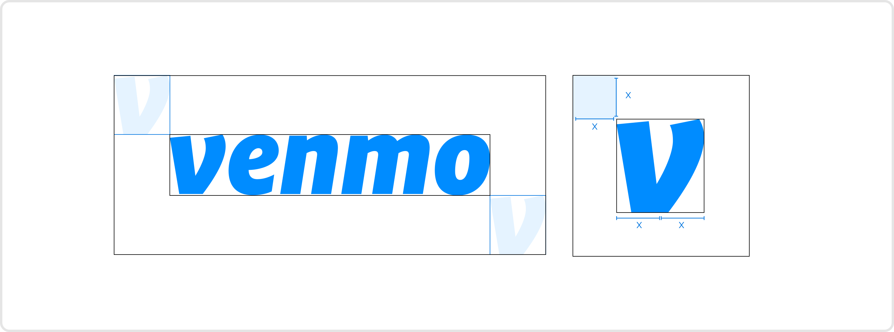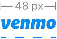 The Venmo logo should never be used any smaller than .5 inches or 48px wide. Follow the same clear space rules at this smaller size.