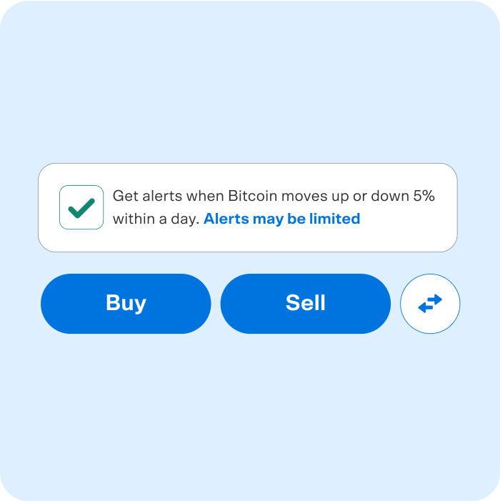 It’s easy to transfer your crypto into Venmo or buy new crypto, then track it all in the app. You can even toggle on price alerts for specific crypto types to get push notifications when the value changes by 5 or 10 percent in a day.