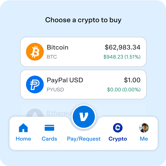 Your first crypto purchase doesn't have to be huge. You can even use your Venmo balance—so payback from yesterday's coffee becomes today's crypto purchase.