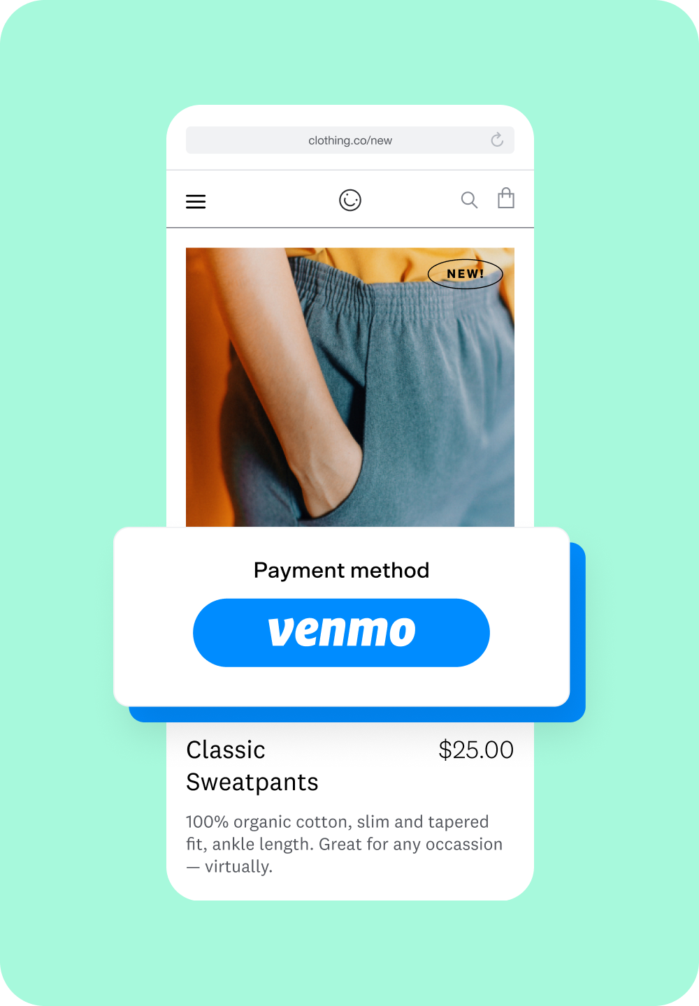 Offer customers more familiar ways to pay by accepting cards, digital wallets, and Venmo. It’s the friendliest way to do business right in the Venmo app.